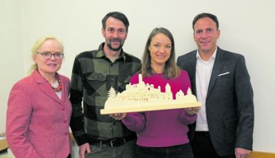 Der neue Lichterbogen für Eppstein ist fertig. Er zeigt historische Gebäude und über allem thronend die Burg.