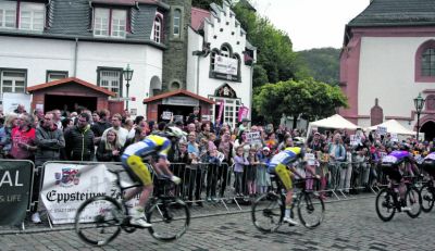 Rund hundert Besucher folgten Stadtarchivarin Monika Rohde-Reith auf ihrem Osterspaziergang vom Eppsteiner Bahnhof, vorbei am Alten Rathaus, dem heutigen Sitz der Eppsteiner Zeitung, durch die Hintergasse bis hoch auf die Burg.