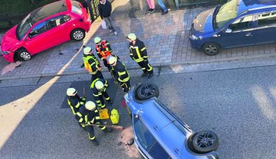 Was nach einem spektakulären Stunt aussieht, war laut Polizei die Folge eines verunglückten Überholversuchs in Höhe der Hauptstraße 59: ...