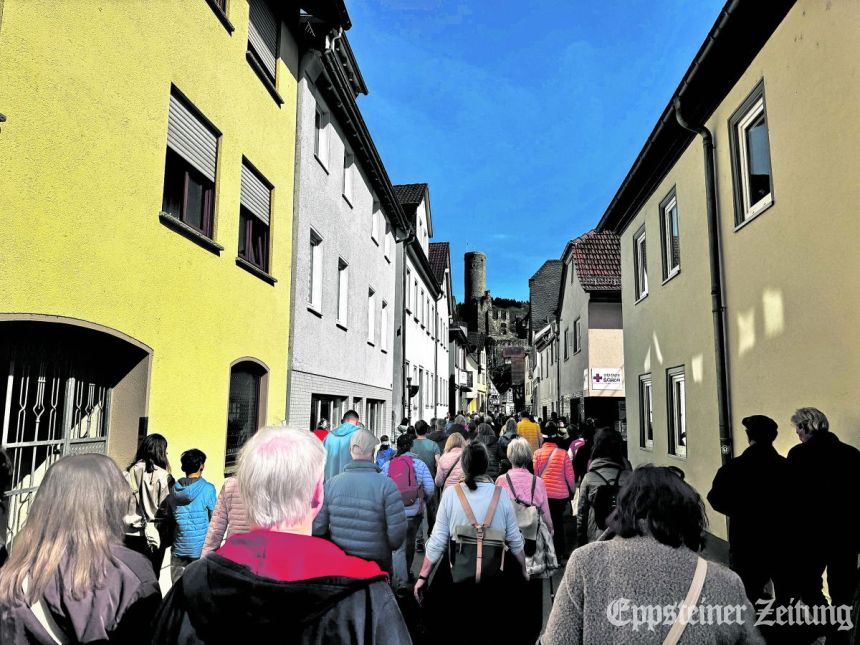 In ihrer Begrüßung nahm Rohde-Reith Bezug zur aktuellen Situation des Hauses Hessen, das derzeit zahlreiche Liegenschaften und Schlösser abgeben wolle. Sie schloss daraus, „dass wir heute froh sein können, dass die Hessen die Eppsteiner Burg schon 1776 verlassen haben“. Elegant hielt sie so den Roten Faden zum Motto des Spaziergangs und vermittelte die wechselhaften, geschichtlichen Verhältnisse.