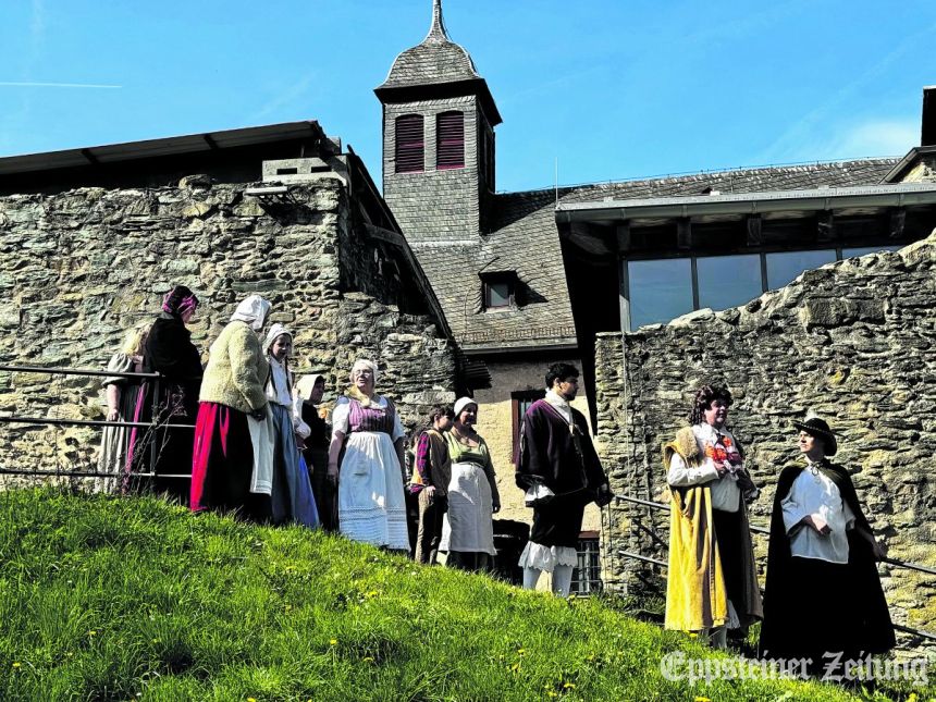 1583 ging die östliche Hälfte an die katholischen Kurmainzer. Eine Burg, ein Landgraf, ein Kurfürst und zahlreiche Alltagsprobleme standen deshalb im Fokus der schauspielerischen Szenen der Eppsteiner Burgschauspieler, die dieses Mal mit 21 Darstellern aufwarteten.
