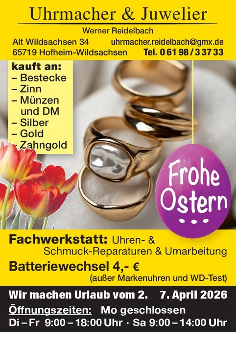 Pünktlich mit dem Beginn des Frühlings ist das Repair-Café wieder da. Am Samstag, 21. März, im Gemeindesaal von St. Laurentius, Burgstraße 31 in Eppstein, von 10 bis 12.30 Uhr. Wie immer repariert das Team Haushalts-, Garten- oder Elektrogeräte oder Textilien.