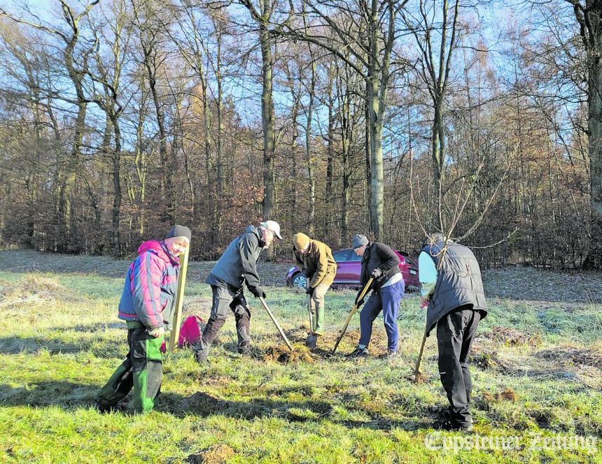 Die zweite Aktion fand am vergangenen Samstag statt: Sechs Aktive des BUND halfen, sechs junge Obstbäume zu pflanzen. So ging die Arbeit bei strahlendem, doch frostigen Novemberwetter schnell von der Hand. Vier Bäume wurden bei Bremthal gepflanzt und die beiden restlichen im Schulgarten der Freiherr-von-Stein-Schule. Bei guter Pflege werden diese Bäume nicht nur Obst liefern, sondern sich auch positiv auf die Klimabilanz auswirken.