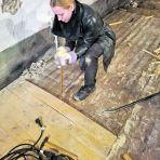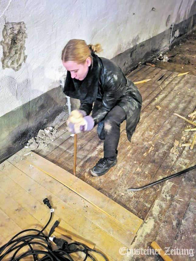 Die aufwendige Entrümpelung war nötig, weil eine defekte Belüftungsanlage für Schimmelbefall in dem historischen Gemäuer gesorgt hatte. Abhilfe tat dringend Not, und „Bauleiter“ Peschke hatte schnell acht tatkräftige Helfer für die Abbrucharbeiten zusammengetrommelt. Unter ihnen Patrick Klein, Anführer der Eppsteiner Rotte, und die Rottenmitglieder Tobias, Stefan, Sven, Tom und Franco. Der Eppsteiner Robert, der zuvor noch keine Bindung an den Burgverein hatte, erklärte sich spontan zum Helfen bereitet. Und auch das Burgfräulein war mit von der Partie. Die zupackende Nathalie I., Lebensgefährtin von Patrick Klein, war mit großem Eifer dabei, verrottete Holzpaneele vom Boden zu lösen und aus dem Mainzer Keller zu entfernen. „Es war anstrengende körperliche Arbeit“, sagte Peschke. „Alle haben sich bei diesem Einsatz voll reingehängt.“