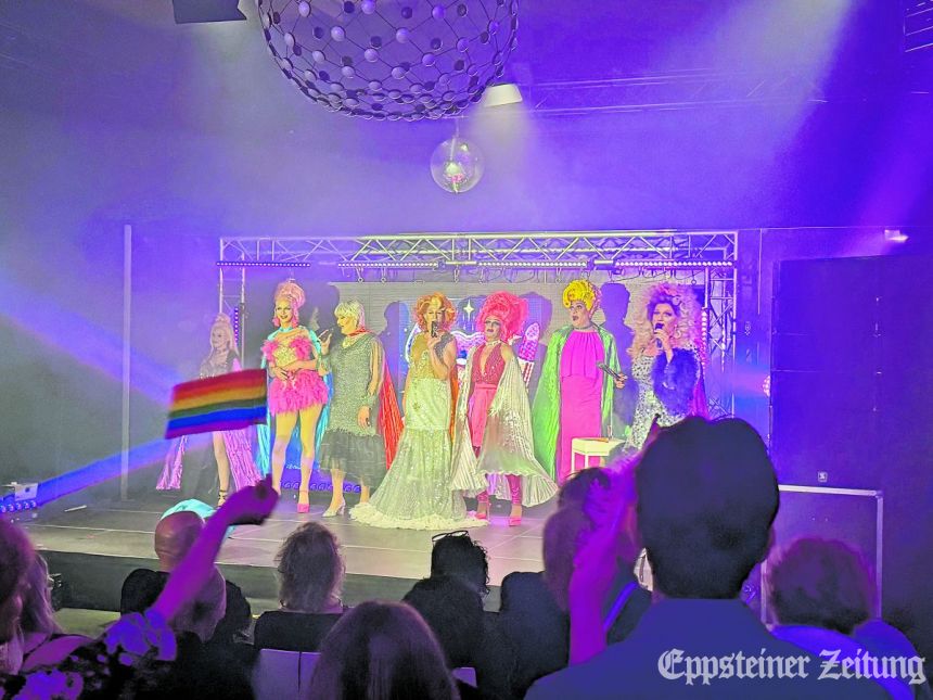 Meiners schlüpfte dabei in die Rolle der Travestiekünstlerin Chou Chou La Belle und eröffnete die Show mit Gesang und dem Lied „Regenbogenfarben“. Die Stimmung im Saal bei den rund 120 Besuchern war sofort entfacht. Auf allen Stühlen hatte das Orgateam passend vorab Fähnchen in Regenbogenfarben und kleine Leckereien verteilt. Im Laufe des Abends, bei dem sich die gute Laune im Saal immer weiter steigerte, wurde wild mit diesen Fähnchen gewunken, manchmal auch einfach nur, um Getränke nachzubestellen. Neben Meiners traten sieben weitere Künstlerinnen auf, die einen Abend voller Vielfalt, Humor und farbenfroher Performances boten: Maxima Love, Vanessa P., Fran Heelton aus Bremthal, Jazz Cortes, Clementine Charpontier, Koko von der Line und Lady Amanda Kayne.
