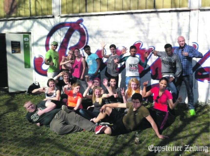 Die Workshop-Teilnehmer (stehend v.l.): Heresh Derakhshn, Paula Gewalt, Svea Sebestyen, Kibrom Ghebremikael (Eritrea), Lisa Beyer (Mobile Beratung), Mosharof Hossain (Bangladesch), Fuad Abubakar Kadir (Äthiopien), Mad Mic; Mitte sitzend v.l.: Tanja Förster (Honorarkraft), Nico Wagner, Jacklyn Kleindienst, Vicky Zelmer, Selina Schlegel, Klaudia Kalujova, Sophie Beck, Fatima Hafsaoui (Jugendpflegerin); ganz vorne v.l.: Alexander Kirsch und Josef Wollmann. Foto: Stadt