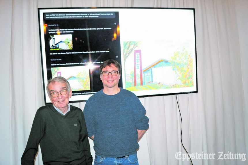 Jede Eingabe oder „Prompt“ in ChatGPT – woher auch immer – trainiert das System. Es kann schon eine Menge: beispielsweise ein Bild des Emmaus-Gemeindezentrums im Stil von Monet erzeugen, wie Blomer zeigte. Er verdeutlichte mit diesem Beispiel, dass Manipulationen durch KI durchaus möglich sind. Ein anderes Beispiel wie bei dem bekannten Flussüberquerungsrätsel ließ durchblicken, wie Halluzination neuronaler Netze funktionieren: Wenn nämlich Parallelen gezogen werden zu Sequenzen, die einen anderen Zusammenhang haben. Die Lösung, die beim Rätsel der Flussüberquerung von Wolf/Ziege/Kohlkopf richtig wäre, würde analog zu Schäfer/Schaf/leerer Suppentopf keinen Sinn ergeben.