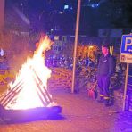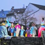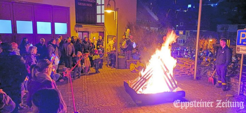 Sauer, Ortsausschussvorsitzende von St. Michael, lobte das hervorragende Zusammenspiel der Kita Löwenzahn und des Elternbeirats. Auch Kira Biehal war voll des Lobs über die mitwirkenden Eltern. Die Organisation der neuen Route sei sehr aufwändig gewesen. Erstmalig haben Eltern den Würstchenverkauf übernommen und nebst der Wurst im Brötchen, Kinderpunsch, sowie Weckmänner verkauft. Der Verkaufserlös ist für die Kita Löwenzahn bestimmt. „Wir sammeln für den Vorgarten“, sagte Biehal, dort wünschen sich die Kinder eine Beerenhecke. Mit Martinsweck und Kinderpunsch versorgt, zog es die Menge auf den oberen Platz zum Martinsfeuer, wo Kinderwartin Julia Becker und Stadtbrandinspektor Mezga das Feuer bewachten.