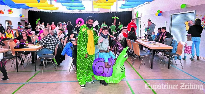 Bei der Kinderfastnacht des Vereins Eppsteiner Kids & Freunde am Samstagnachmittag war der Bürgersaal mit rund 200 Gästen voll belegt. Als süße Einlagen ließ die Vorsitzende Andrea Kopecky-Mauer gemeinsam mit „Quatschtante“ Nikole Decher hin und wieder einen Bonbonregen herabfallen.
