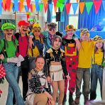 Die Kerbeburschen, alle in grüne Shrek-Kostüme gewandet, bis auf Kerbevadder Lucas de Ridder, der als Shreks Esel verkleidet war, hatten die Halle aufwändig geschmückt. Unter de Ridders Anleitung waren aufgeblasene Palmen und Schwimmringe an den Wänden aufgehängt, Banner in den Farben des Vereins an der Decke drapiert worden, Luftschlangen auf den Tischen verteilt und ein Netz voller Luftballons über der Tanzfläche vor der Bühne hochgezogen worden. Wie jedes Jahr öffnete es sich gegen Ende des Kinderfests und ließ einen bunten Ballonregen auf die Kinder niedergehen. „Es ist so schön zu sehen, wie unterschiedlich die kleinen und großen Kinder mit den Ballons spielen!“, freute sich Schomburg