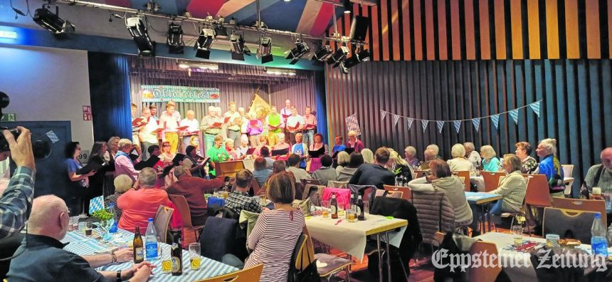 „Wir haben dieses Jahr mit Plakaten in allen Stadtteilen geworben und alle Eppsteiner Vereine persönlich eingeladen.“ So reservierte die Feuerwehr gleich zwei Tischreihen und der TSV, die Vockenhäuser Hexen, der humoristische Verein und die Musikschule etliche weitere Plätze. Drei Kellner wuselten zwischen den Gästen herum und brachten Oktoberfestbier mit und ohne Alkohol, Apfelwein und Erfrischungsgetränke zu den Durstigen. Hungrige wurden zünftig mit Fleischkäse und Kartoffelsalat, Weißwurst oder Spundekäs mit Brezeln verköstigt. Eine halbe Stunde vor Einlass trafen die ersten Gäste im weiß-blau dekorierten Saal ein. Konstantin Karklisiyski, Chorleiter, Dirigent, Cellist in einem Trio und Preisträger mehrerer internationaler Wettbewerbe, stellte ein mitreißendes Oktoberfest-Programm auf die Beine.