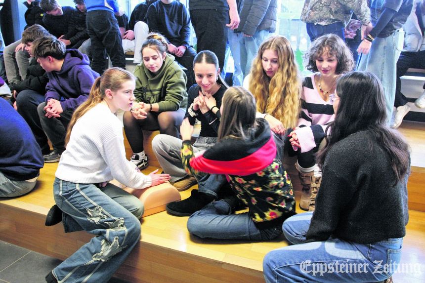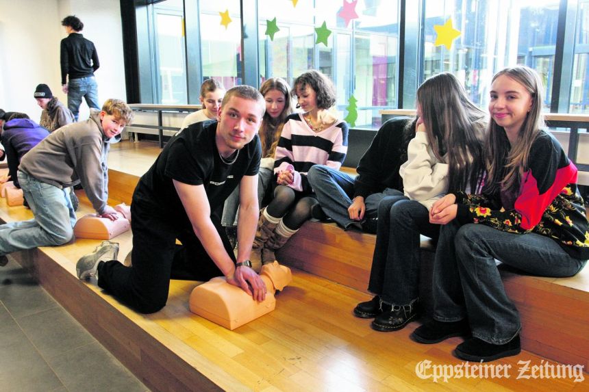 Für die Schulsanitäter, die ebenfalls aus den Reihen der Neuntklässler kommen, waren die Übungen schon Routine. Auch über Sepsis seien sie informiert, „aber jede Wiederholung ist gut, denn jeder erklärt die Situationen etwas anders“, hat etwa Ida beobachtet. Und Hannes, der in seiner Freizeit bei der Jugendfeuerwehr aktiv ist, hat selbst schon nach einer Verletzung erlebt, wie wichtig ein funktionierendes Rettungssystem ist. Ihn habe dieses Erlebnis darin bestärkt, in seiner Freizeit „etwas fürs Leben zu lernen und sich in einer tollen Gemeinschaft zu engagieren“.