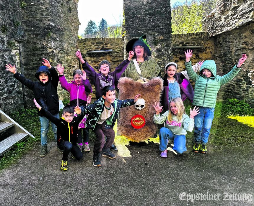 Beim Märchenspiel im Palas durften die Kinder aktiv mithelfen: Einige Kinder spielten die spannende Fesselszene um den Riesen aus der Sage um „Ritter Eppo“ unter Anleitung der Museumsmitarbeiterin nach – und mit genauso großem Eifer die Befreiung der Jungfrau Berta von Bremthal. Das brachte nicht nur die Kleinen zum Lachen, sondern führte auch bei den Erwachsenen zu großer Heiterkeit. Im Anschluss frühstückte die Gruppe noch in der Kemenate und machte sich danach unter Aufsicht ihrer Betreuer an die Erkundung der Burg. sr