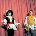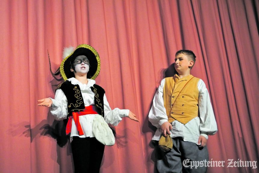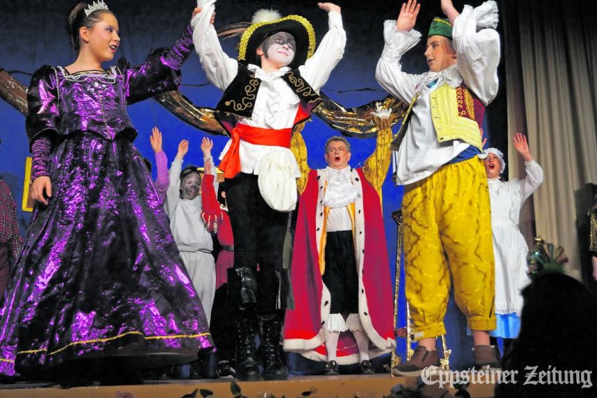 Die jungen spielfreudigen Mimen – unterstützt von einigen erfahrenen Burgschauspielern – entführten ihr Publikum in die magische Märchenwelt der Brüder Grimm. Da die im Internet verfügbaren Drehbücher für das Ensemble schwierig umsetzbar waren, griff Regie-Mitglied Janna Bergen zur Feder und schrieb die Texte für das Märchenspiel selbst. So erhielt der gestiefelte Kater seinen Namen. Pardon, die wonnigen Kids auf den Bänken in der ersten Reihe waren es, die „Konstantin“ schmetterten , als sie gefragt wurden, wie der Kater heißt. Büttner und die Darsteller auf der Bühne suchten immer wieder den Dialog mit dem jungen Publikum, das sich rege zu Wort meldete.