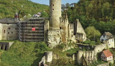 Nordmauer ist eingerüstet, in der Burg geht der Betrieb weiter