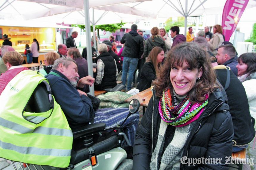 Lewinsky überwacht den Aufbau von Tischen und Stühlen, weist die Marktbeschicker ein. Sie waren vormittags bereits auf anderen Märkten und haben, wenn sie in Eppstein eintreffen, oft schon zwei aufreibende Anfahrten und einen anstrengenden Markt hinter sich. Selbst wenn sie im Stau standen und nicht rechtzeitig zum Marktbeginn um 14 Uhr eintreffen, behält die Marktmeisterin die Ruhe, denn auch die Kundschaft ist an den flexiblen Rhythmus des Marktes gewöhnt.