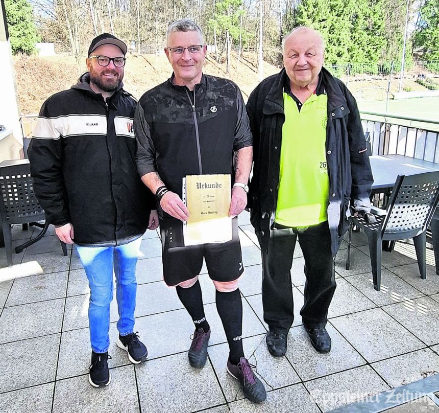 Eine Besonderheit am Rande: Da kein offizieller Schiedsrichter angesetzt war, übernahm Sven Henning vom TuS kurzfristig und leitete die Partie souverän und mit viel Übersicht. Im Rahmen dessen wurde er vom Ersten Vorsitzenden Heinz Brückner für seine 25-jährige Vereinsmitgliedschaft mit Urkunde und der Vereinsnadel in Silber ausgezeichnet – ein würdiger Moment für langjähriges Engagement.