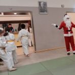 Dankbar nahm Benner als erstes Ehrenmitglied, die Urkunde entgegen. Er dankte auch Sidrat Blöchle, die dem Verein seit 45 Jahren die Treue hält, zunächst als aktive Judoka und bis heute als Kassiererin. Abschließend überraschte der Nikolaus die Kinder mit einer Geschichte. Jedes führte einen Wurf oder eine Falltechnik vor, bevor es einen Schokoladennikolaus erhielt. Danach wurde gemeinsam mit Caren Lewinsky von der Band Neustart gesungen, zur Überraschung des Altmeisters sang sie ein selbstgeschriebenes Judolied.