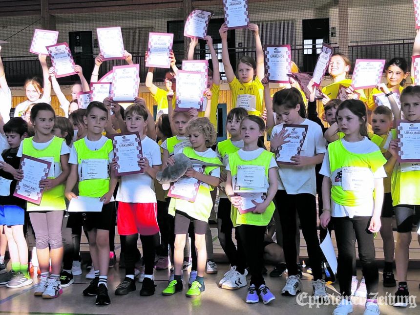 Nach einer kurzen, aber intensiven Vorbereitung auf die teils noch unbekannten Disziplinen Hürdensprint, Hochweitsprung, Medizinballstoßen und Hindernisstaffel legten die Kinder beim Wettkampf in der Fischbacher Staufenhalle noch mal eine Schippe Ehrgeiz drauf. Unterstützt wurden sie durch die anfeuernden Familien auf der Tribüne und Emils spontan beigesteuertes Maskottchen „Rudi“. Bei der Siegerehrung reckten dann mehr als 100 Teilnehmerinnen und Teilnehmer aus zwölf angetretenen MTK-Teams ihre Urkunden in die Höhe (Foto). Erst im September und November folgen Teil zwei und drei der Kreis-KILA-Liga 2026 für diese Altersklasse.