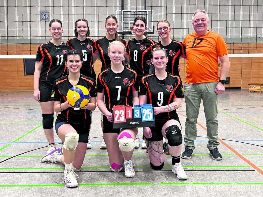 Nach 19 Minuten ging der erste Satz mit 18:25 verloren. Nun machten es die Damen des TuS besser, wodurch Satz zwei deutlich und ungefährdet mit 25:15 nach 20 Minuten an den TuS ging. Auch Satz 3 wurde mit 25:21 gewonnen. Spannend wurde es erneut im vierten Satz. Beim Stand von 21:15 erlaubte es eine kleine Schwächephase des TuS dem Gegner, bis auf einen Punkt heranzukommen. Über 23:21 und 24:23 tüteten die Spielerinnen den letzten Satz mit 25:23 und damit den Sieg dann doch noch ein.