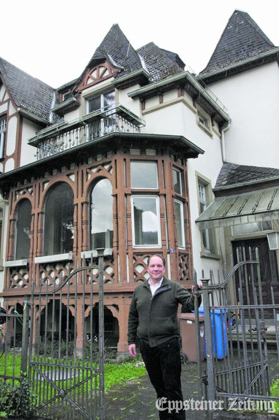 Ihre verschieferten Giebel und Ecktürme, das schmucke Sichtfachwerk und die auf zierlichen Holzbalken gestützte Fachwerk-Loggia ziehen bei der Einfahrt von Fischbach aus unweigerlich den Blick auf sich. Bei den Eppsteinern heißt die als Einzeldenkmal ausgewiesene Villa Laux nach den früheren Besitzern.