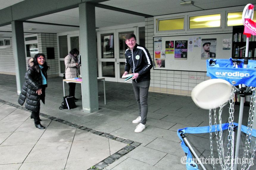 Der neu gegründete Verein „Wurfkollektiv“ stellte auf der Bühne die Sportart Discgolf vor, die mit Frisbeescheiben ausgeführt wird und wies auf seine beiden neuen Dart-Anlagen mit wettbewerbstauglichen Turnierscheiben hin, eine fest installierte im Alten Rathaus in Bremthal, und eine mobile, die an diesem Tag im Foyer des Bürgerhauses etliche Besucher zum Testwerfen anlockte.