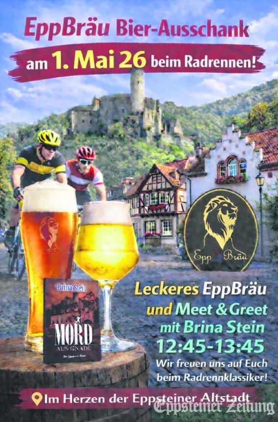 Direkt im Anschluss, gegen 13.45 Uhr, passiert erstmals die Elite des Rennens die Altstadt – jene Szene, die im Krimi atmosphärisch eingefangen wurde: Literarische Spannung und sportliche Realität treffen aufeinander. Davor und danach bleibt genug Zeit, die Biersorten von EppBräu zu probieren: Im Ausschank hat die Mikrobrauerei ihre Sorten: „Milder Hesse“ und „Rotes Weizenbier“.