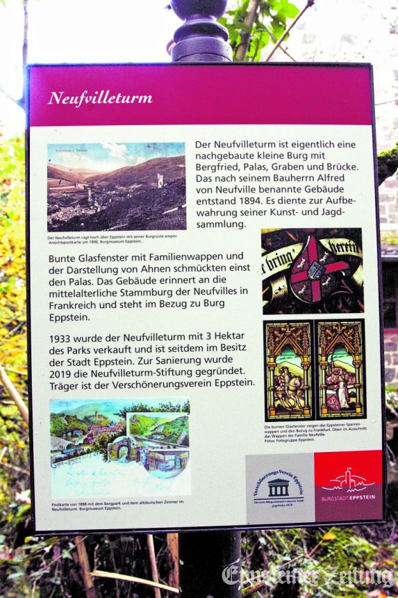 In einem Erbbaurechtsvertrag hat die Stadt Eppstein das Erbbaurecht an dem etwa 33 000 Quadratmeter großen Waldgrundstück und dem Neufville-Turm 2019 dem Verschönerungsverein übertragen und ihn dazu verpflichtet, den Neufville-Turm und das gesamte Erbbaugelände stets in ordnungsgemäßem Zustand zu erhalten.
